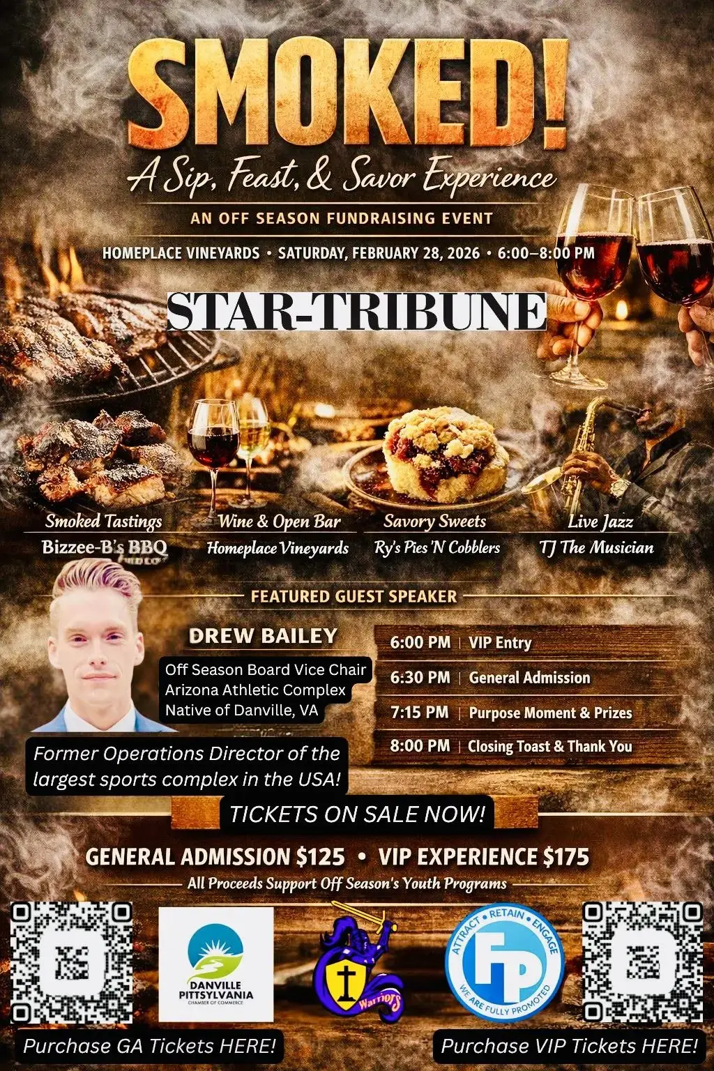 Enjoy an absolutely fabulous fundraiser for Off Season. The Homeplace Vineyard will host the event Saturday, February 28th from 6p-8p.