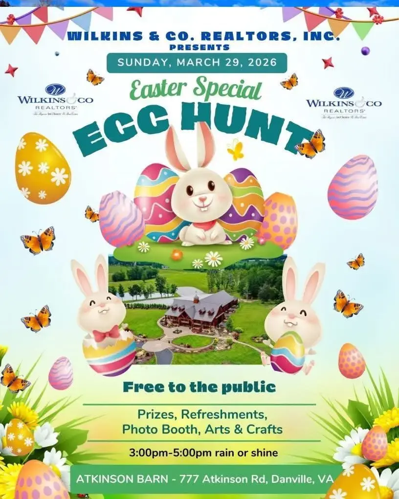 Wilkins & Co. Realtors invite everyone to their Easter Special Egg Hunt on Sunday March 29th from 3pm-5pm at the Atkinson Barn. There will be prizes, refreshments, a photo booth, arts and crafts!...